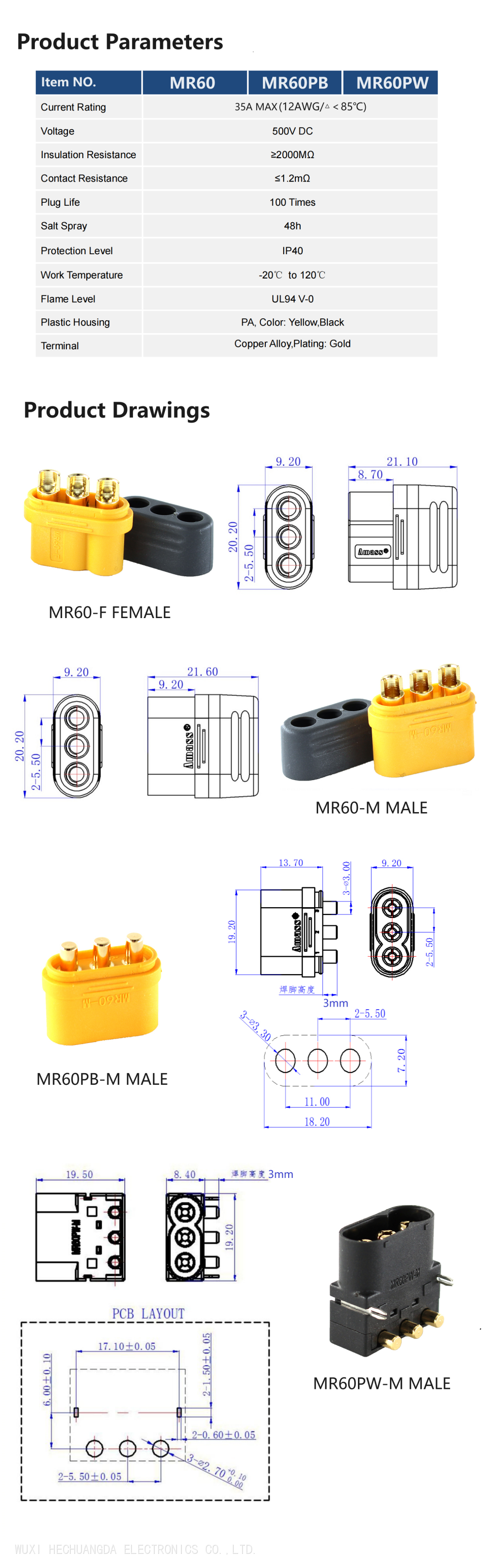 Genuine Amass MR60 MR60PB MR60PW-F/M Connectors Male Female 30A High Current 3pin Connectors