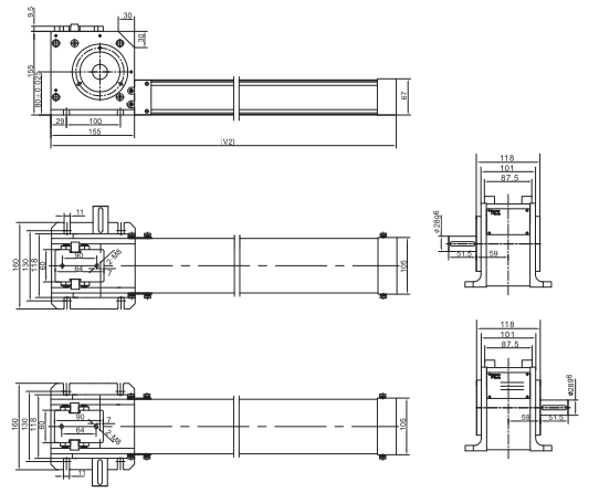 The picture is a schematic diagram of the 30S pin chain. The stroke of XCL30S/L (R) -180/S is 180mm, the total length is 280mm, and the load is 10kN.