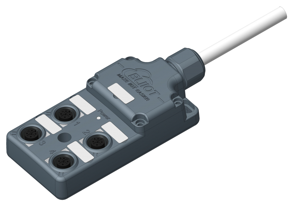 BLIIOT DBT series 8 port M12 one channel distribution box features an industrial-grade design with built-in tool-free terminal blocks for convenient on-site wiring. The corrosion-resistant shell is made from materials that withstand acid and alkali, achieving an IP65 protection rating. It is used to gather NPN or PNP sensor signals from different devices in the field, integrating them into a multicore cable for connection from the sensor to the controller.