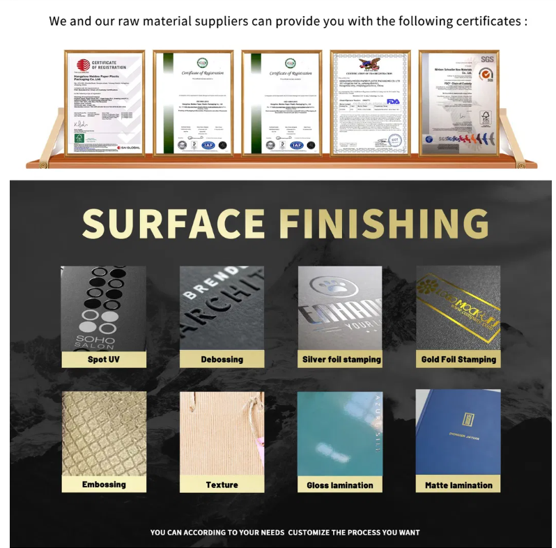 | Printing Handling | Embossing, Glossy Lamination, Stamping |