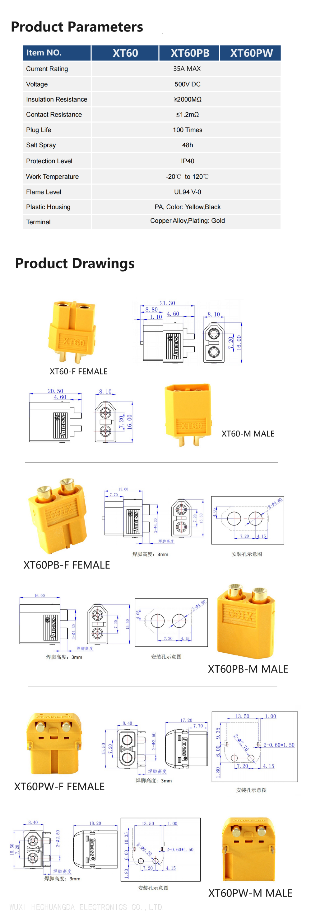 Genuine XT60 XT60PB XT60PW-F/M Connectors With Back House Male Female Battery Connectors