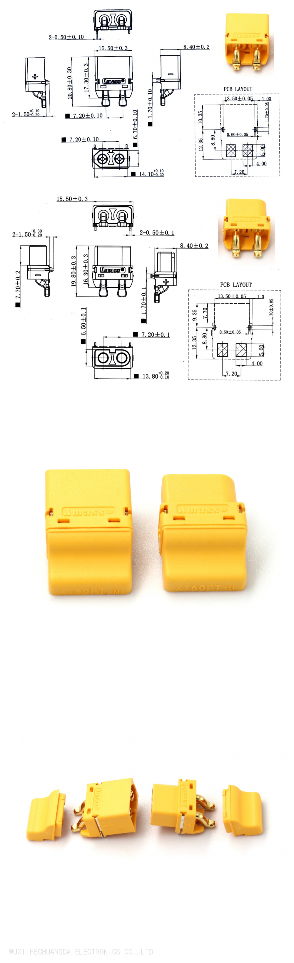 Amass XT60PT-F/M Connectors SMT PCB Solder Connectors XT60PT Male Female Battery Connectors