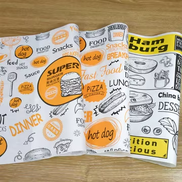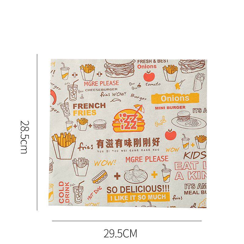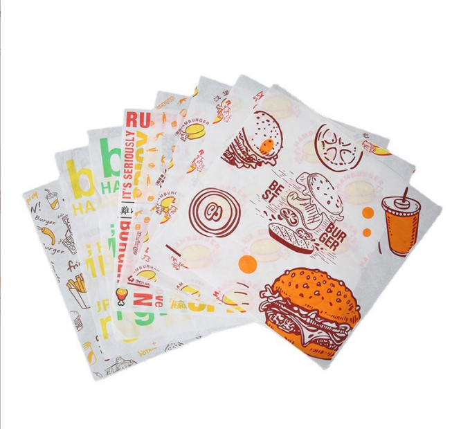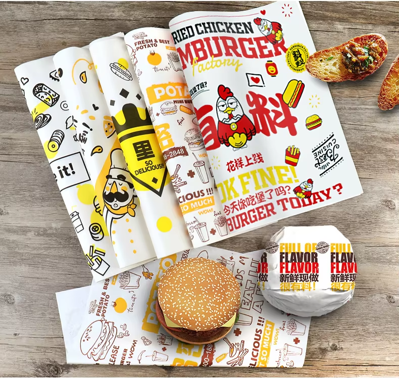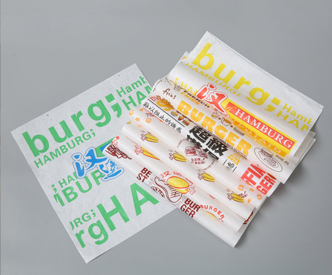 Custom Fast Food Hamburger Packaging Waxed Paper Food Wrapping Paper Printed Greaseproof Paper