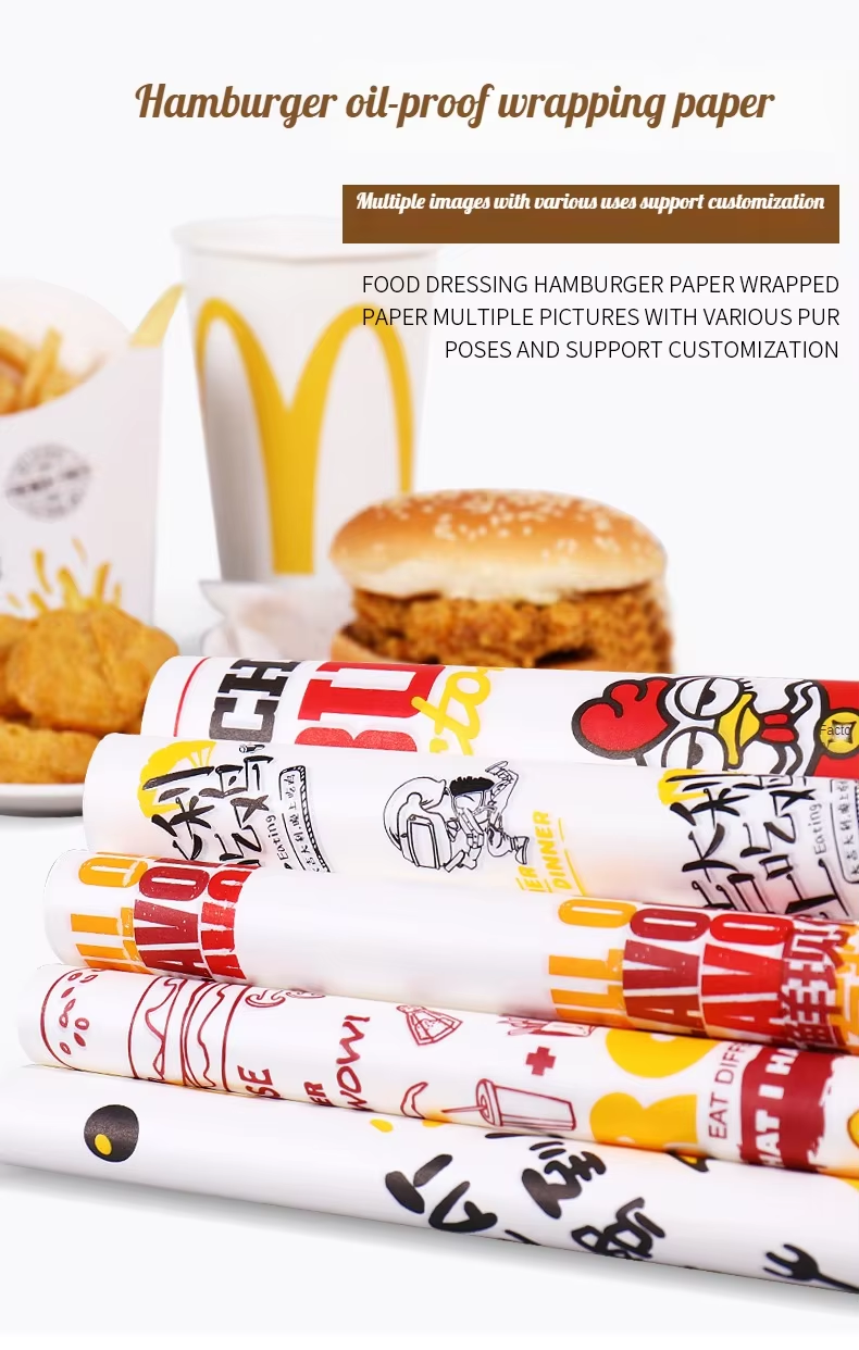 Household Hamburger Printed Food Wrapping Greaseproof Paper Burger Sandwich Wrapping Packaging Paper