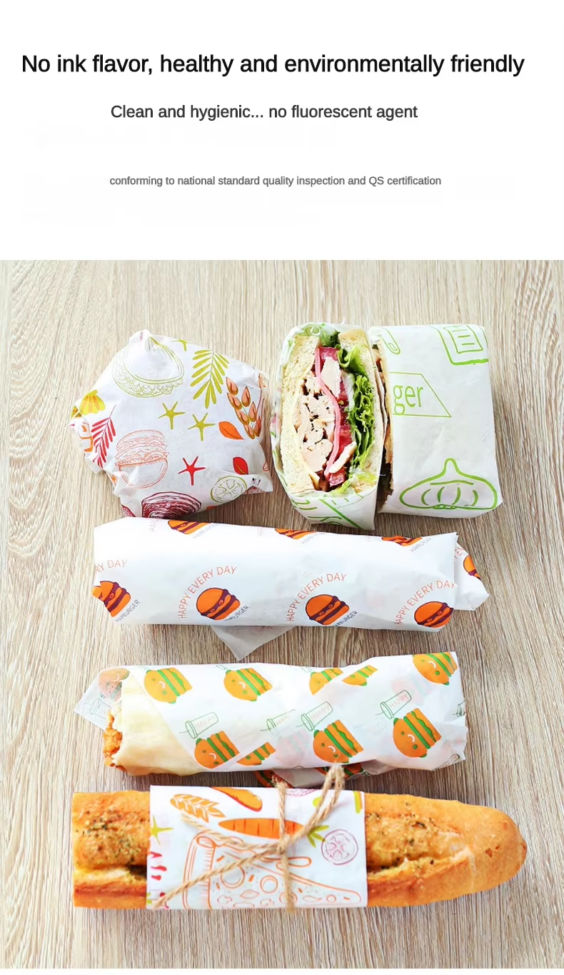 Food Grade Waxed Paper Burger Wrap Greaseproof Fast Food Sandwich Packaging
