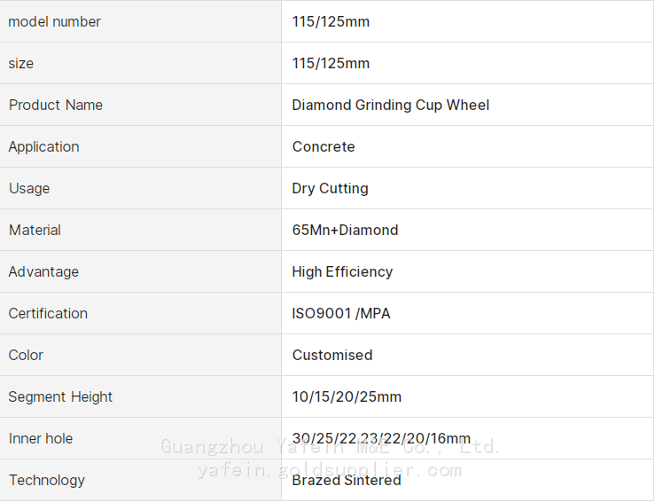 Good Quality 115/125 mm Double Row Diamond Cup Grinding Wheel for Polishing Concrete, Granite, Marble, Floor
