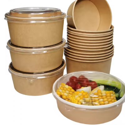 Factory Direct 2024 Best-selling Paper Salad Soup Bowl With Lid 8oz 16oz 32oz Kraft Paper Bowl