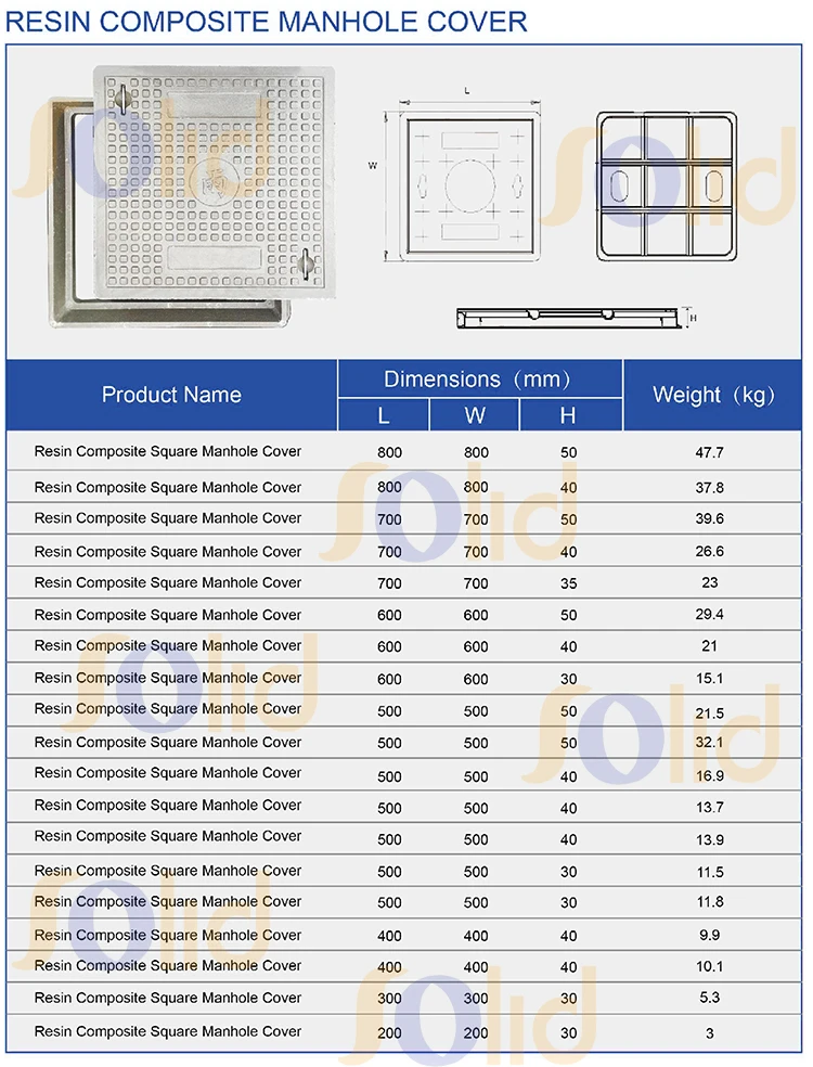 Waterproof En124 Manhole Cover Plastic Composite SMC Square Manhole Cover