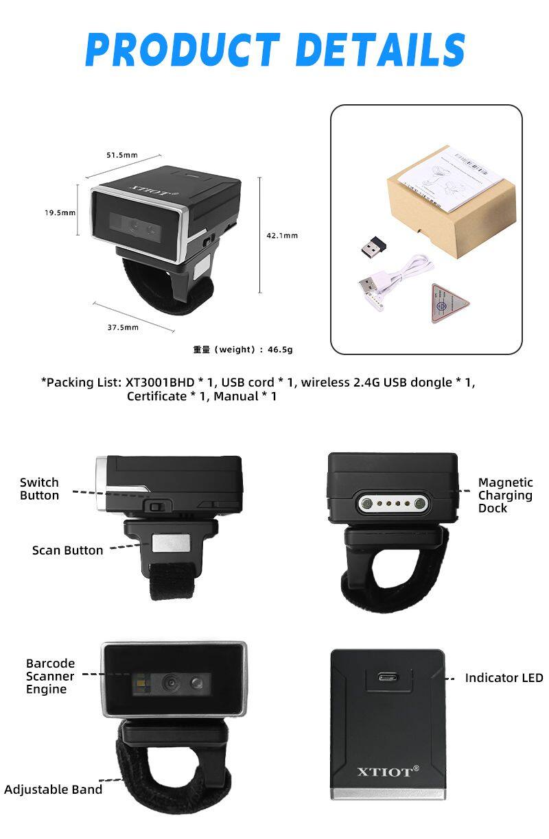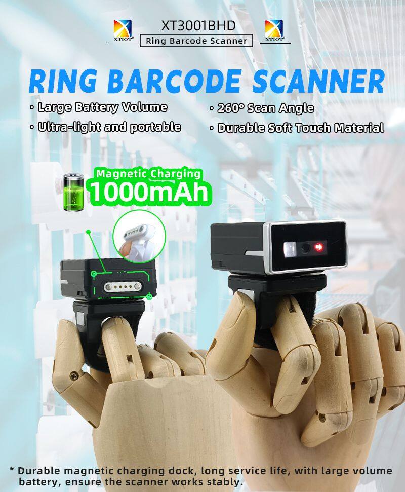 - XT3001AHD XTIOT Online Shopping Ring Barcode Scanner 2D CMOS Mini Finger Code Reader Support SPP BLE Mode