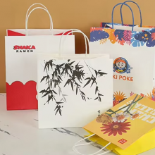 Custom Made Brown Kraft Paper Fast Food Packaging Bag Digital Printing Flat Take Away Restaurant Carry Bags Coffee 'Go' Use