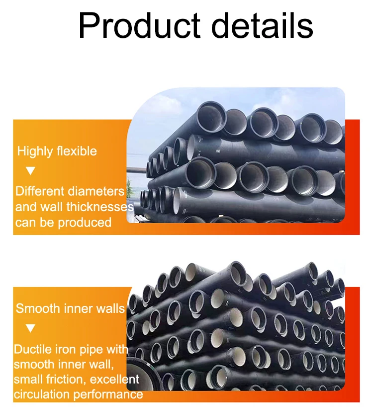 ISO2531 EN545 EN598 Black Iron Pipe Manufactures Tyton Joint Cement-mortar Lined Ductile Iron Pipe