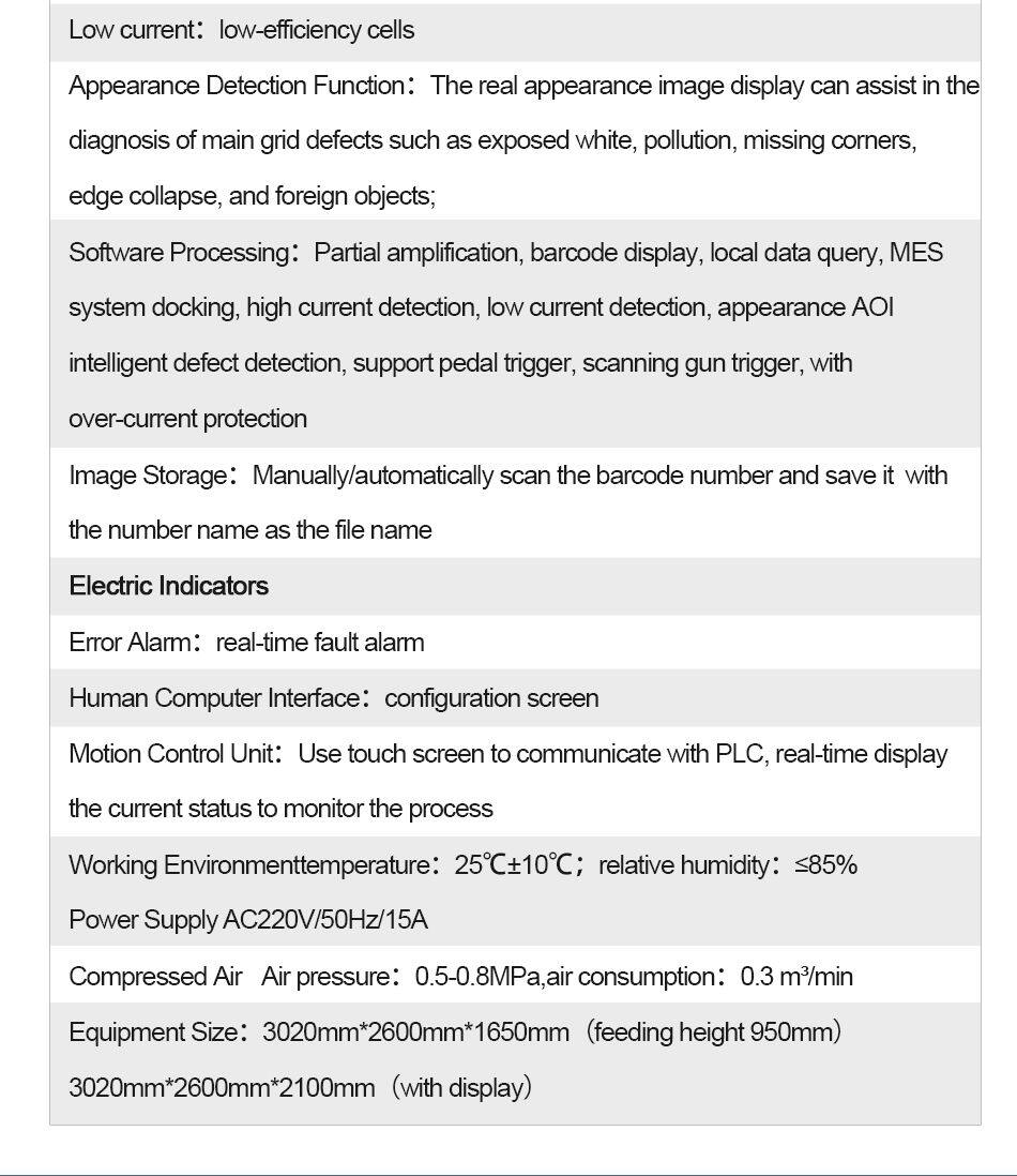 Automatic EL On-Line Machine With 2400W Camera Phase