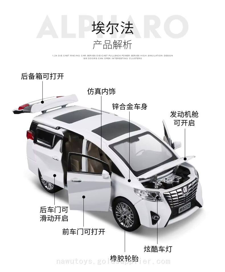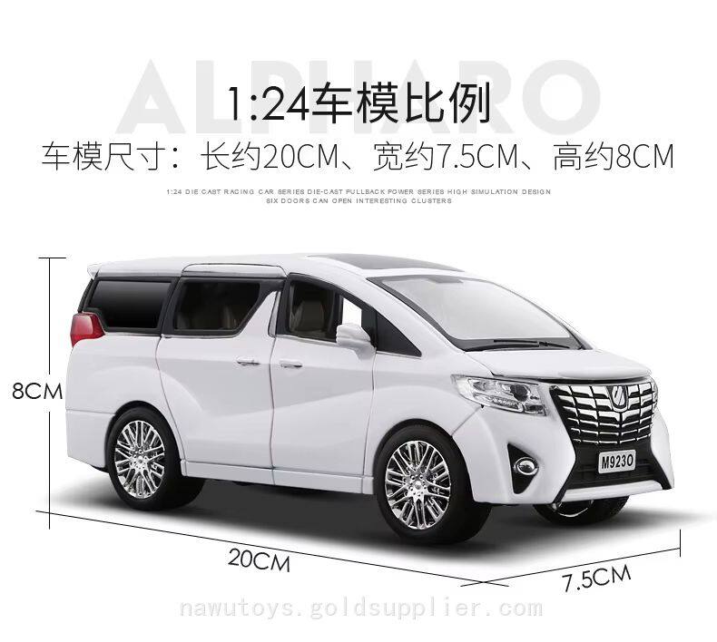 Wholesale ALPHARD High Quality 1:24 Zinc Alloy Rubber Children Diecast Kids Toy Car