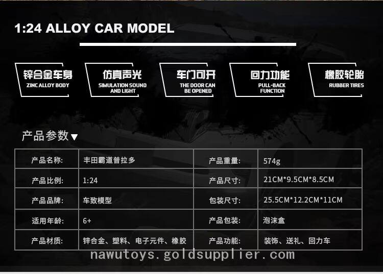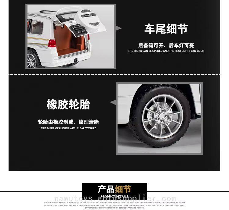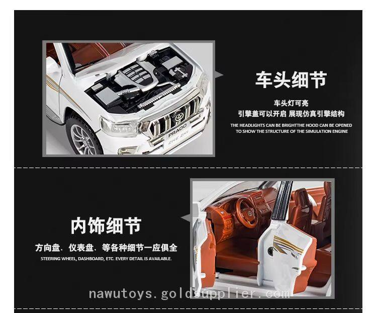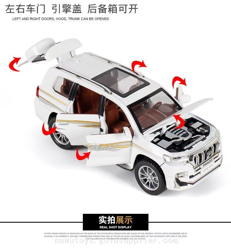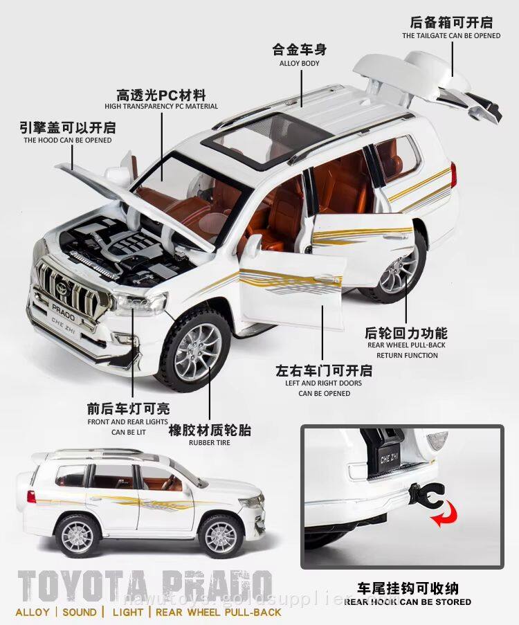 Hotsale Diecast 1:24 Scale Prado Pull Back Diecast Toy Vehicles With Music and Light