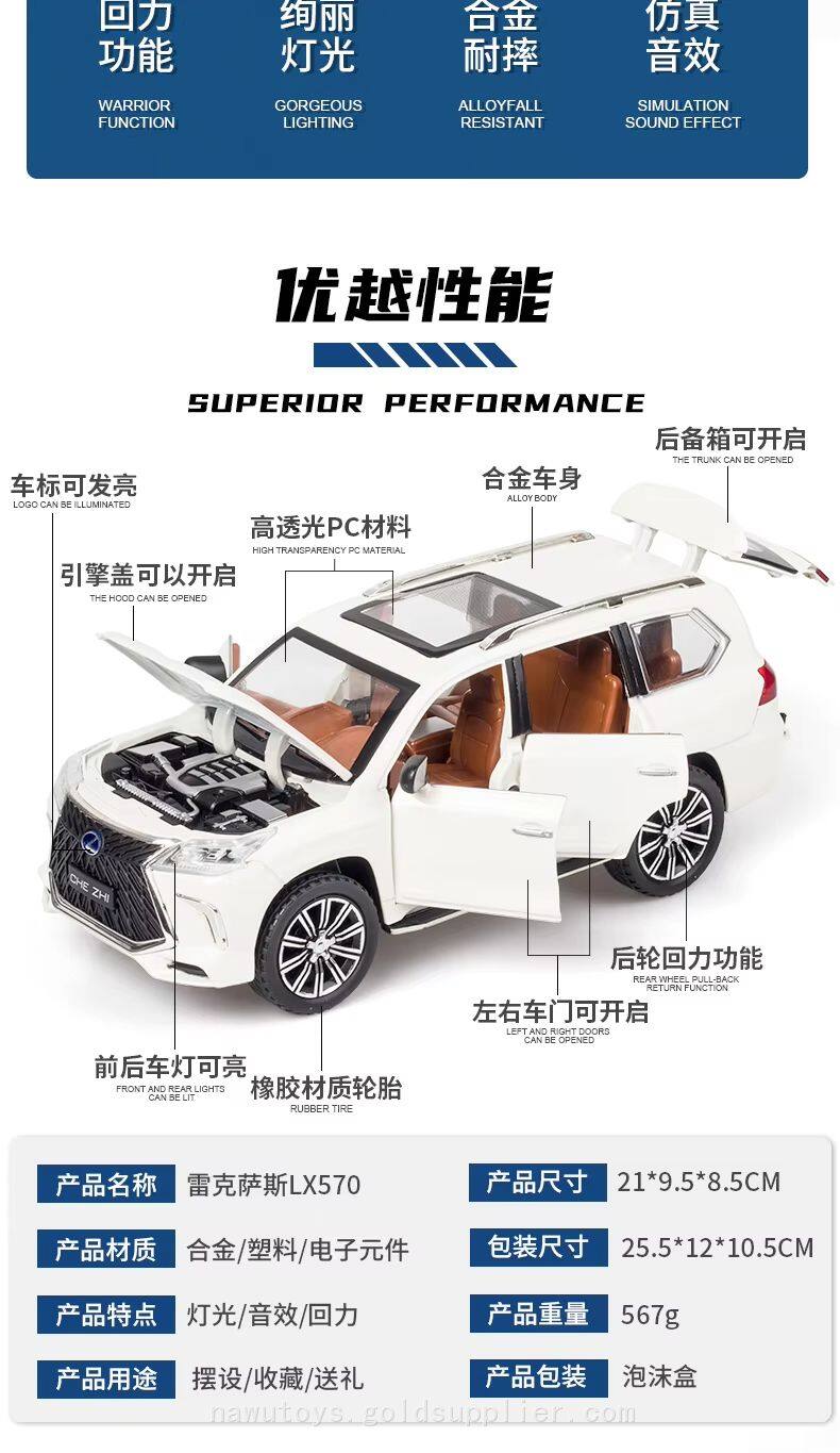 High Quality Lexus LX570 Car Suv Models Real 1:24 Alloy Toy Cars Diecast Kids Metal Car Model