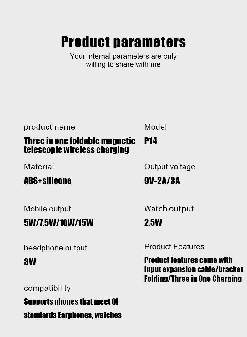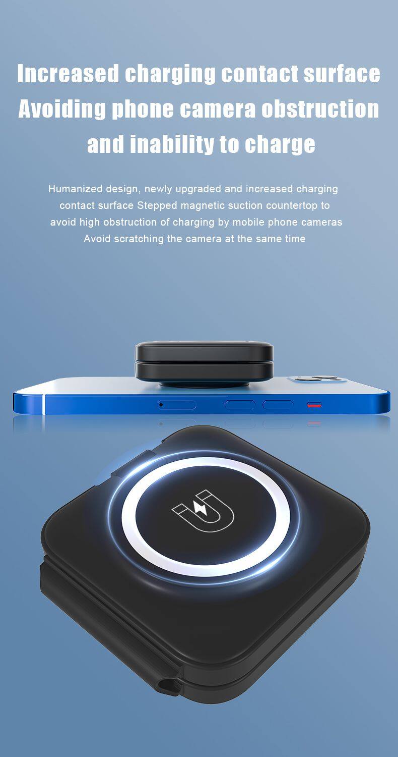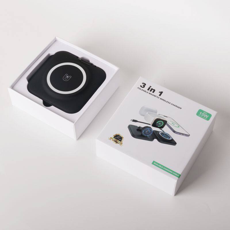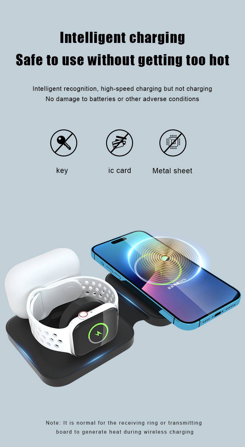 Type | Magsafe Compatible Foldable Wireless Charger 15W 3 in 1 with 1m Retractable Cable for iPhone iWatch iPod |