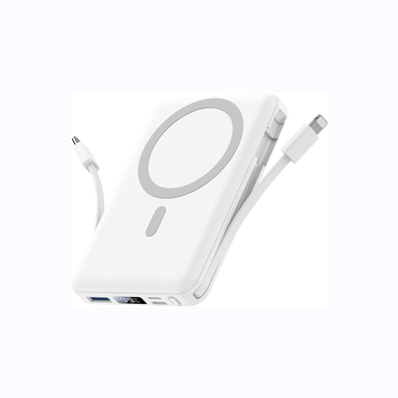 Built-in Dual Cables Battery Bank Power Supply Fast Charging Wireless Magnetic Power Bank 10000mah Led Display With Cable