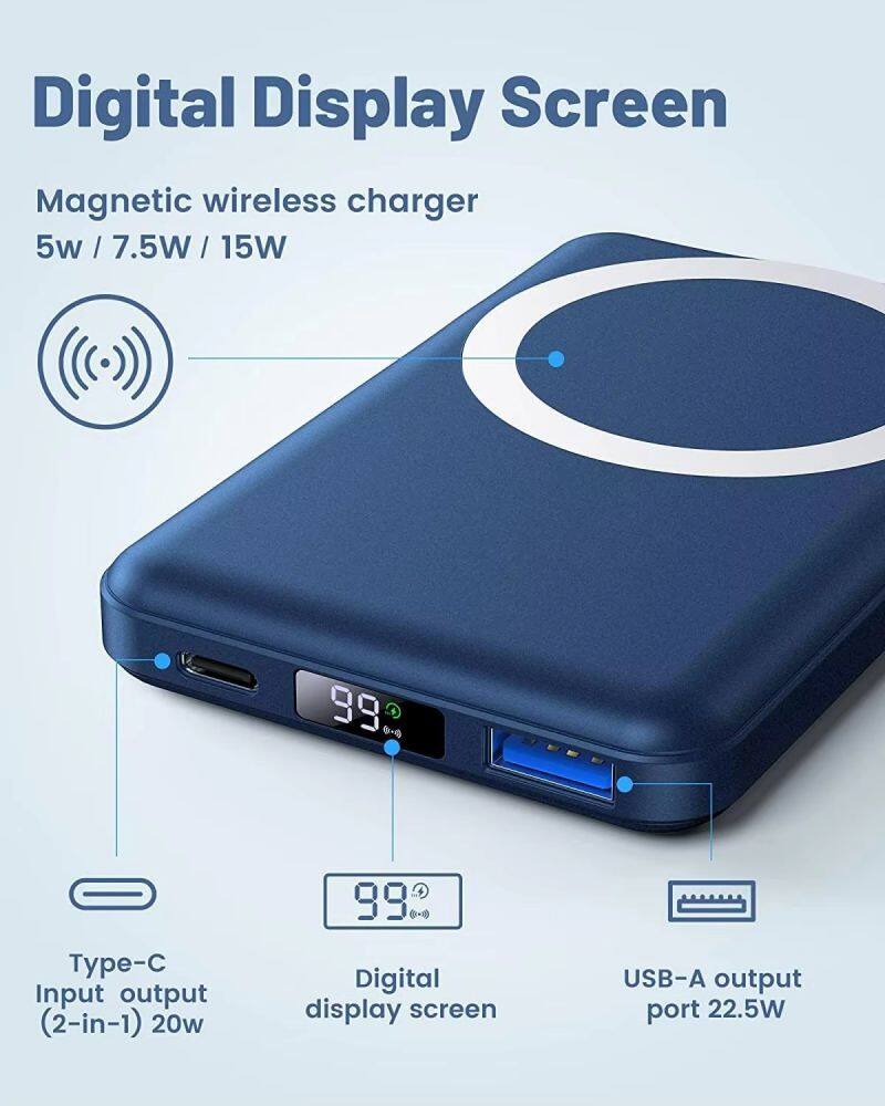 Magnetic Portable Wireless Charger Power Bank 10000mAh 22.5W PD Fast Charging LED Display Slim Power Bank Wireless