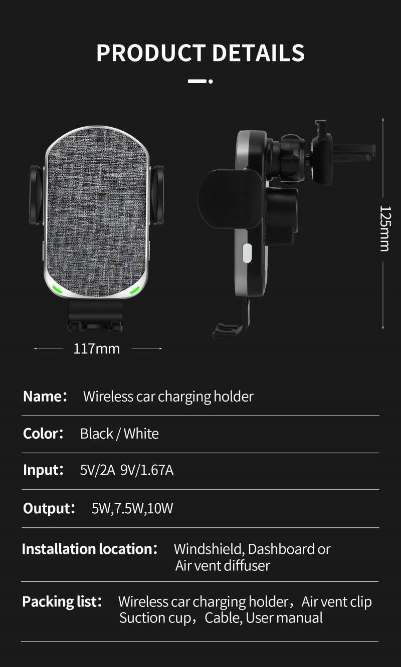 Type | Auto Clamping Car Wireless QI Charger with Suction Cup on Dash Board/ Window Shield/Air Vent |