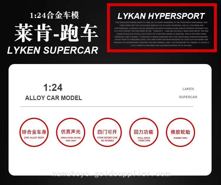 1/24 Laken Car Toys Metal Alloy Sports Diecast Toy Car Simulation Pull Back Diecast Model Car For Kids Gifts