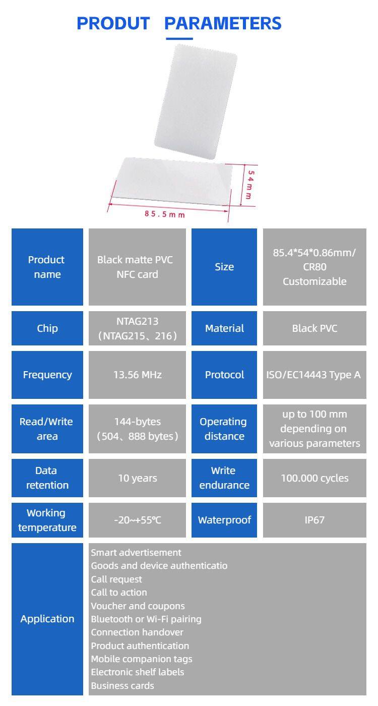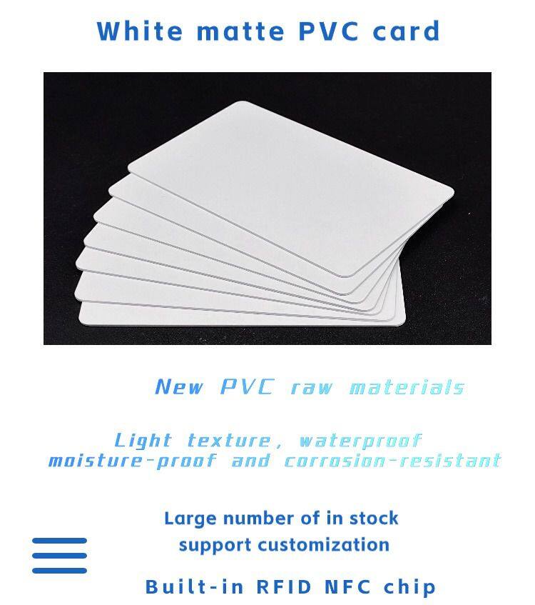 NFC 213/215 White PVC Card Waterproof RFID Card NFC Communication Interface 13.56MHz Frequency Made Plastic White Matte Material