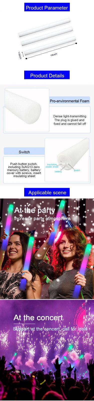 Custom Party Supplies 3 Modes Multi Color Flashing LED Light up Foam Sticks Foam Glow Stick