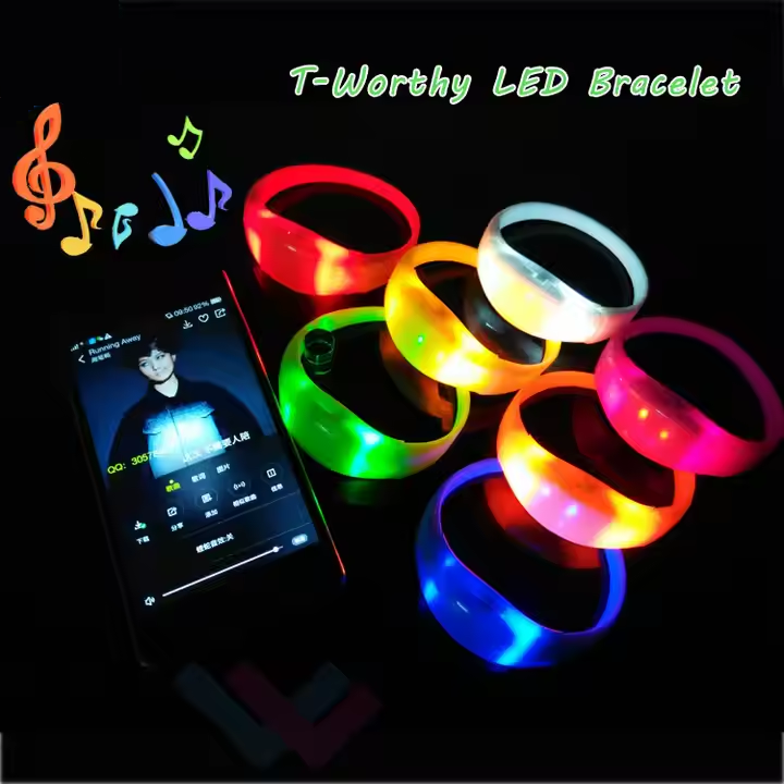 Customizable Event Light-Up Silicone Sound Activated LED Bracelet Features LED Flashing for Concert Parties Christmas Halloween