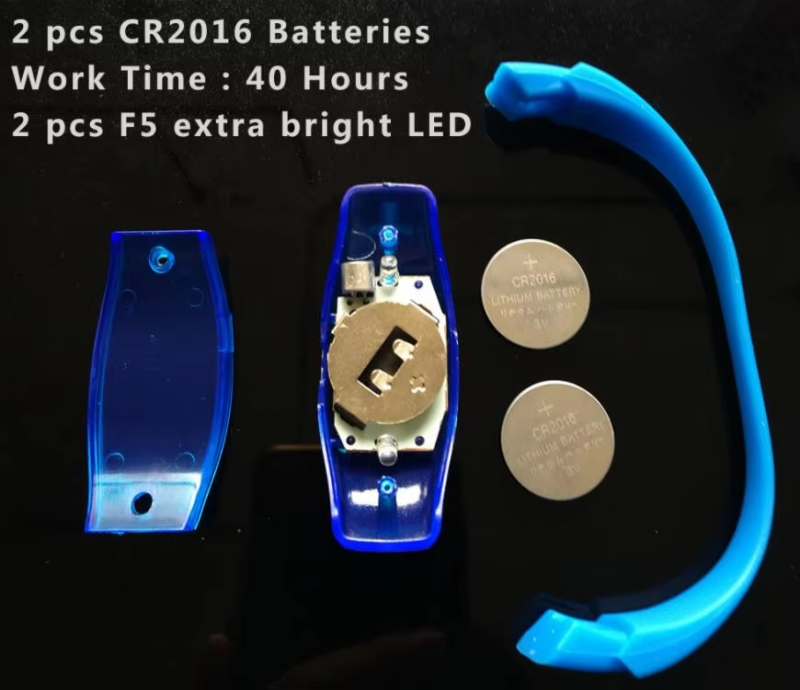 Our Flashing LED Wristbands LED Light Silicone Bracelet is with LED lights, and great for logo printing. Which makes it a great product for promotion. It comes with 2 pcs CR2016 batteries and replaceable.