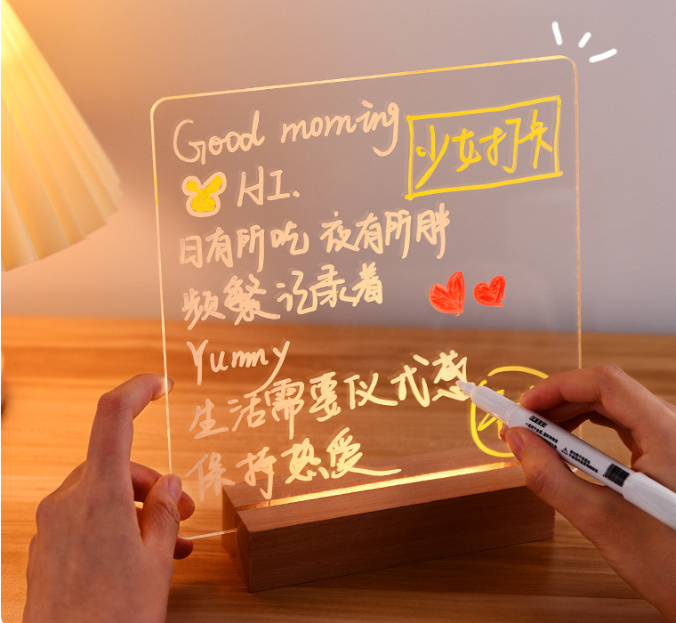 3D Acrylic Luminous Wooden Plastic USB DIY Message Board Tablet Board Bedroom Night Light Lamp With Pen