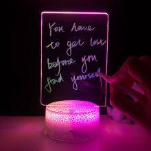 Hot Sale Creatives DIY 3D Led Erasable Blank Pen Rewrirable Acrylic Note Board Illusion Night Lamp With Wooden Base Night Lights