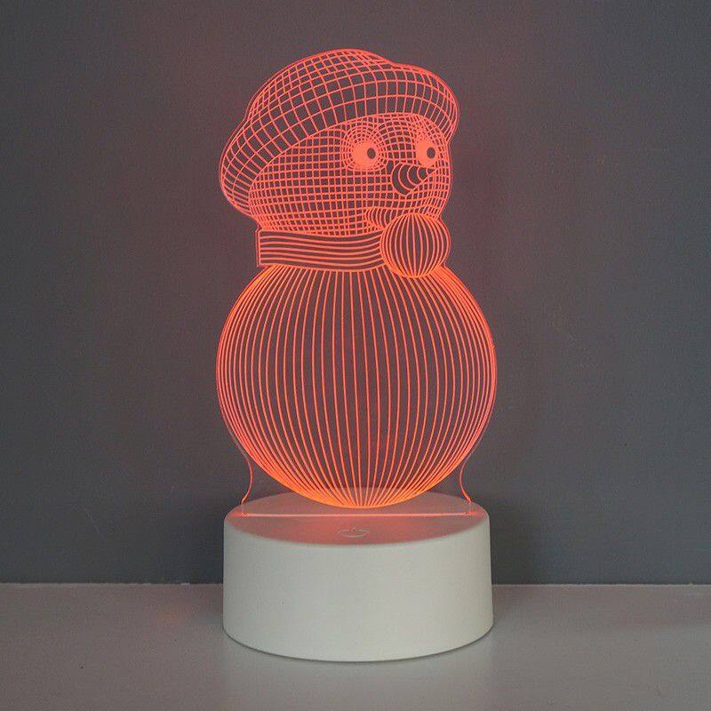3D Illusion Creative Snowman RGB Bedside Night Lamp for Christmas Gift