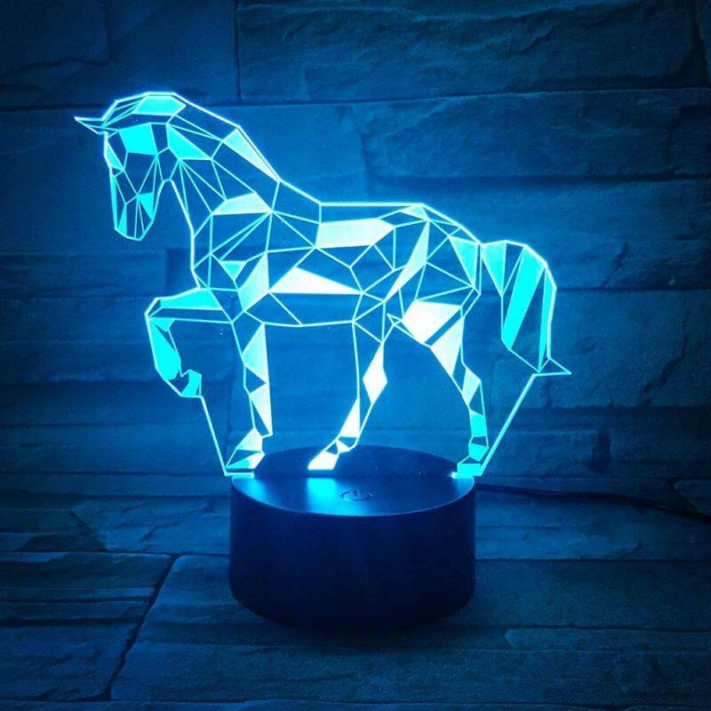 3D Optical Illusion Smart Touchable 7 Color Change Horse Design LED Night Light for Kids Room Decoration