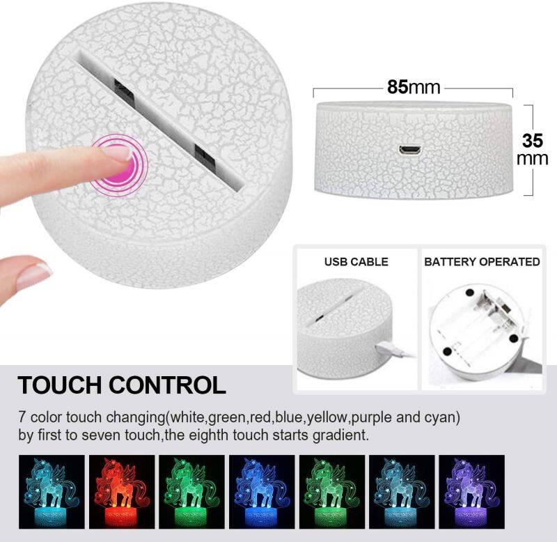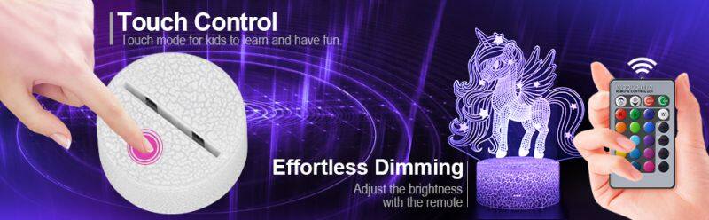 The night light for children is dimmable, you can adjust the brightness with the remote control, the 3D night lamp consists of