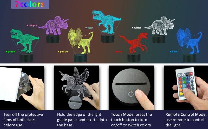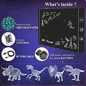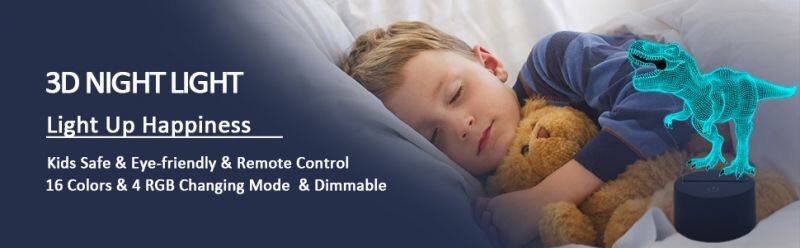 Dinosaur Gifts 3D Illusion Lamp Night Lights 16 Colors Changing With Remote Birthday and Holiday Gift for Children Girls Light
