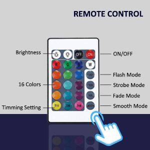 * 16 colors changing / Dimmable / 4 modes of color flashing (Flash, Strobe, Fade, Smooth)