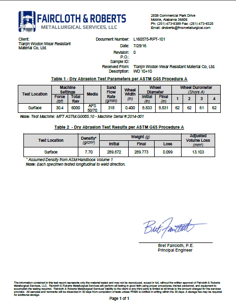 We have a series of metallography experiment instruments, so the metallurgical microstructure can be analysed. The chromium carbide volume fraction on the microstructure is above 50%.