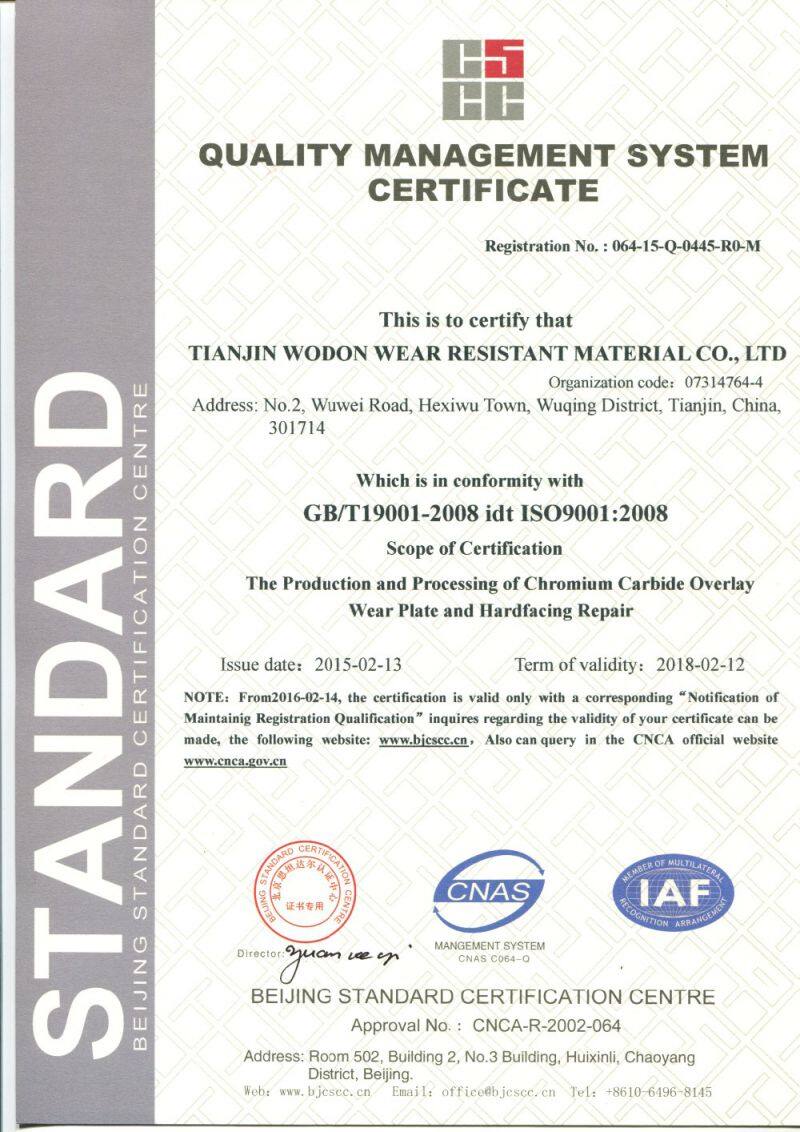 A: We are ISO certified flux cored welding wire and chromium carbide overlay wear plate factory.