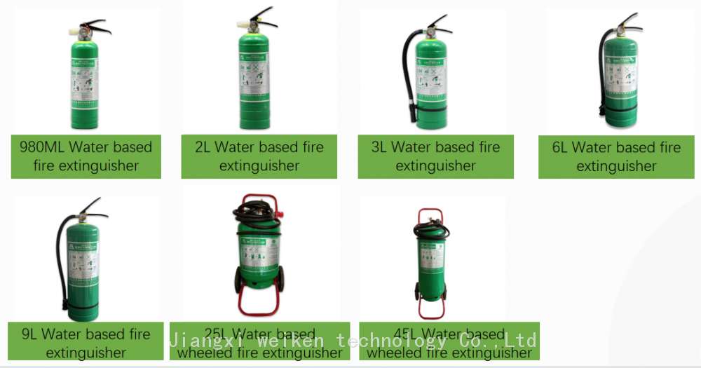 Water-based fire extinguishers operate based on the principle of physical fire suppression. The fire extinguishing agents are composed of hydrocarbon surfactants, fluorocarbon surfactants, flame retardants, and additives. When deployed, the extinguisher generates a water mist that rapidly evaporates, absorbing a large amount of heat from the fire. This cooling effect quickly lowers the temperature at the fire site and inhibits thermal radiation.