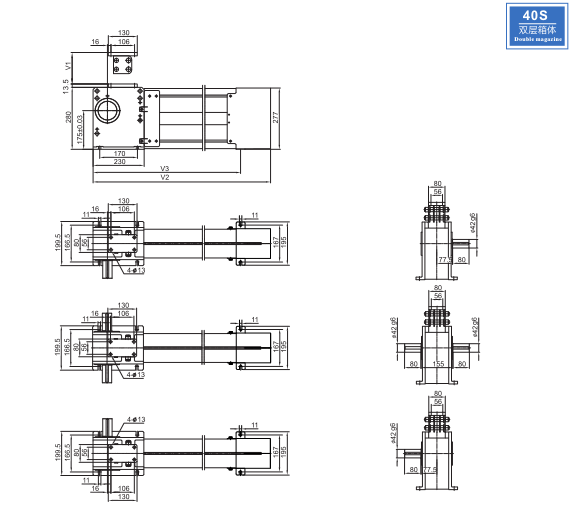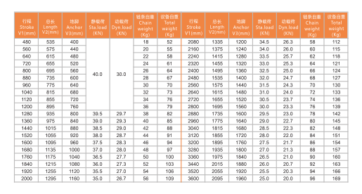 XCL40S/L(R)-3600/D: stroke is 3600mm, total length V2 is 2095mm.The static load is 25kN, and the dynamic load is 20kN.