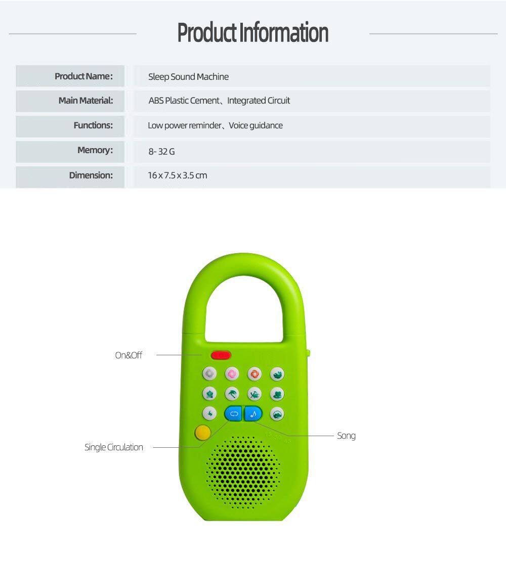 Function: Loop playback/multiple sound effects to soothe the baby's sleep;
