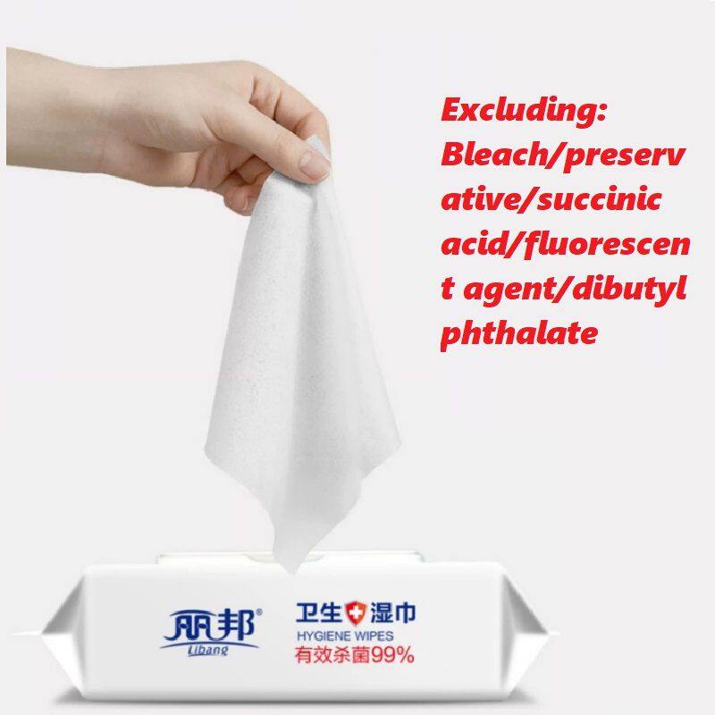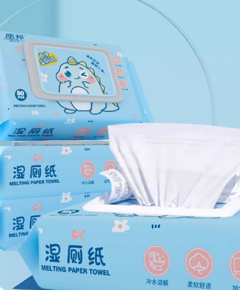The main component of wet toilet paper is made of non-woven fabric made of 80% virgin wood pulp and 20% lyocell. It can dissolve in water and can be discarded and washed away in the toilet.