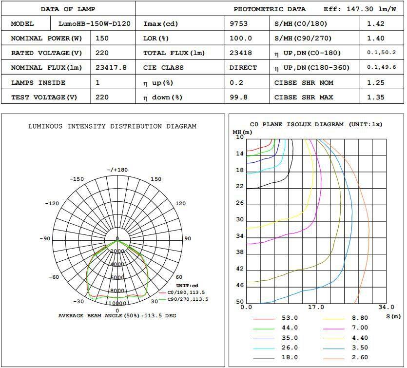 | Lamp Luminous Flux(lm) | 22500 | Lamp Power(W) | 150 | |