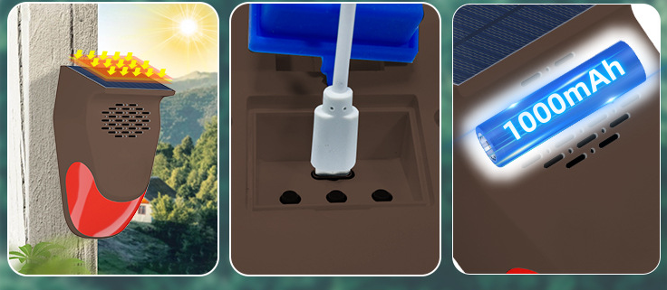 Solar powered animal repellent pig scaring device drives away wild animals, corn fields, farmland horn, dog barking alarm