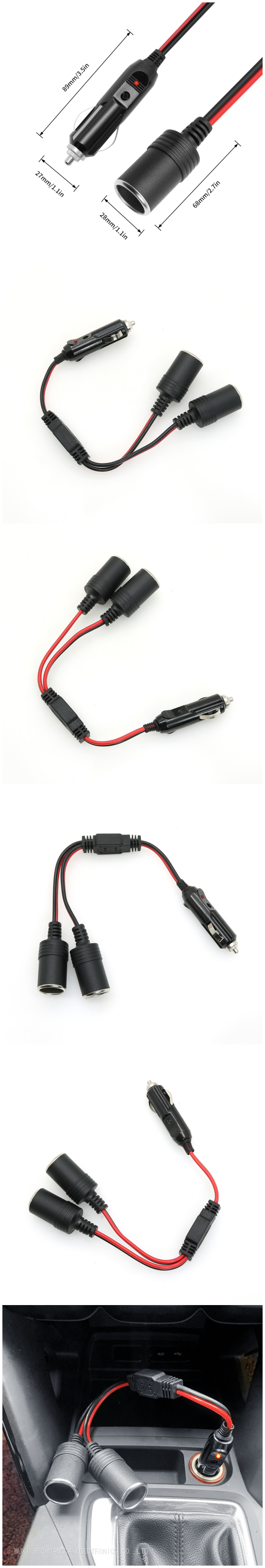 Customized Processing of Cigarette Lighter Male Plug to Female Sockets Power Cord
