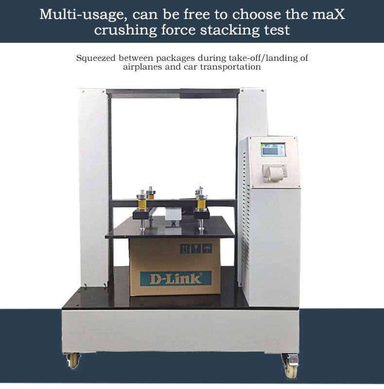The machine usually has adjustable settings for compression speed and rate of pressure application. These controls allow the user to simulate real-world conditions (such as gradual weight accumulation during transport or sudden compression).