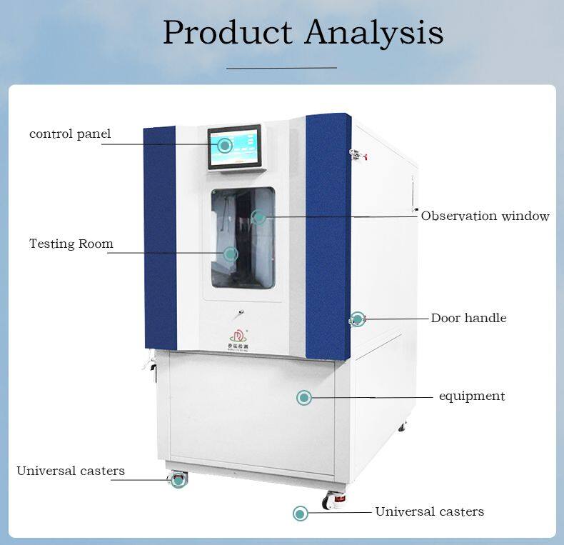 The test chamber features precise temperature and humidity control systems, ensuring the reliability of test results. Temperature is typically controlled between 20°C and 30°C, and humidity is set between 50% and 80%, in accordance with relevant standards (e.g., GB/T 14677-2008).