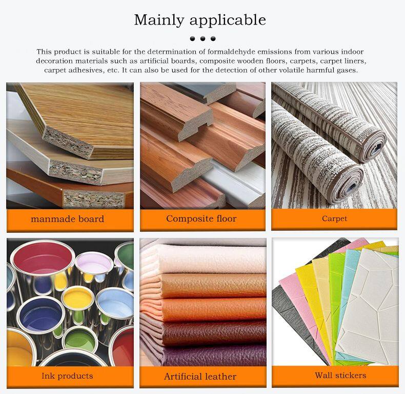 It is primarily used to detect the formaldehyde emission levels of decoration materials (such as paints, wallpapers, flooring, panels, furniture, etc.), ensuring that these materials meet the formaldehyde emission standards in real-world usage, thus safeguarding indoor air quality.