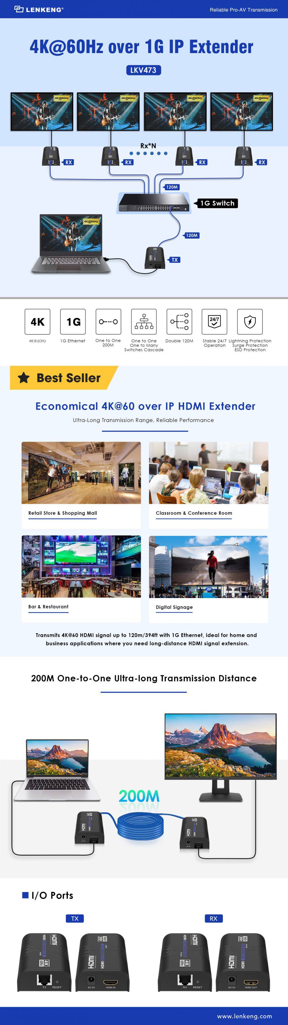 4K@60Hz HDMI Extender 200M HDMI over IP Extender LQ470