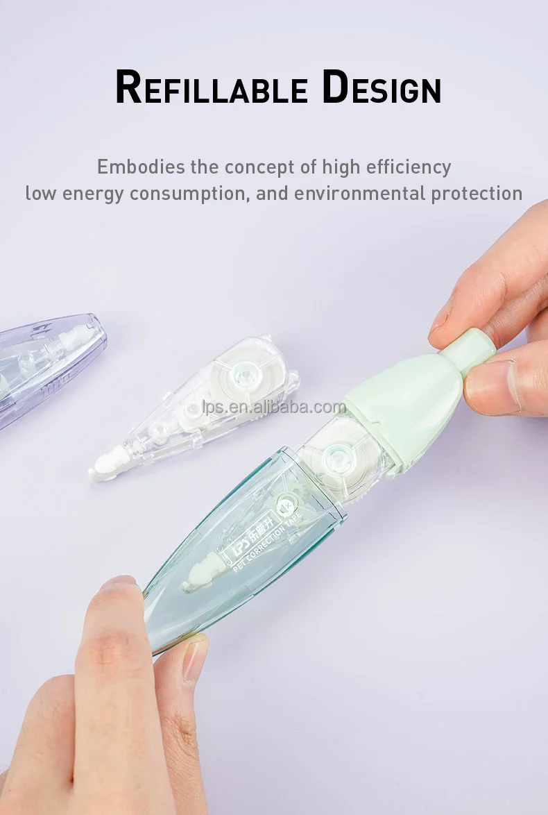 - Customized 20m New Design Creative Plastic Correction Tape PET Clear Film School and Office Supplies Correction Roller