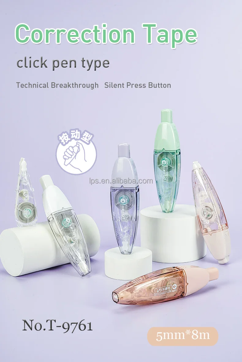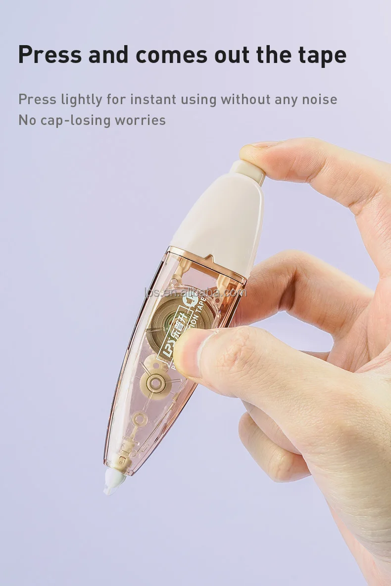1. Technical breakthrough Correction tape with silent press button2. Press and comes out the tape, correction like holding a pen3. Press lightly for instant using without any noise